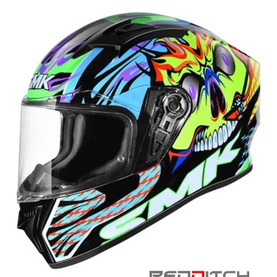 SMK Stellar Skull Multicolour Full Face Motorbike Helmet, GL245 (L)